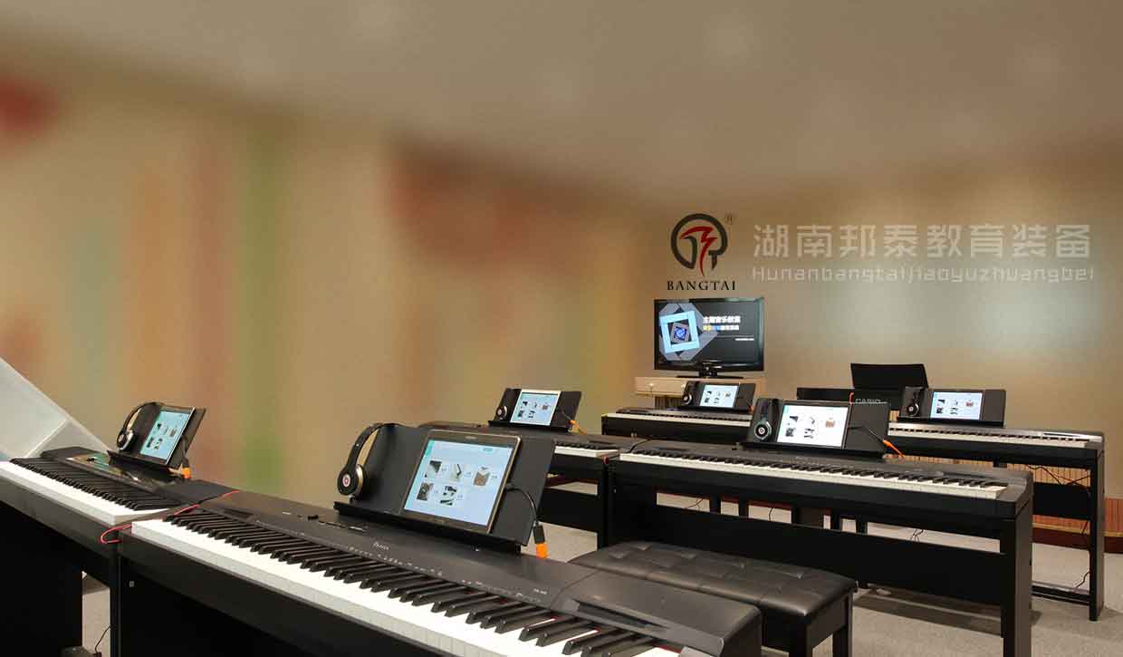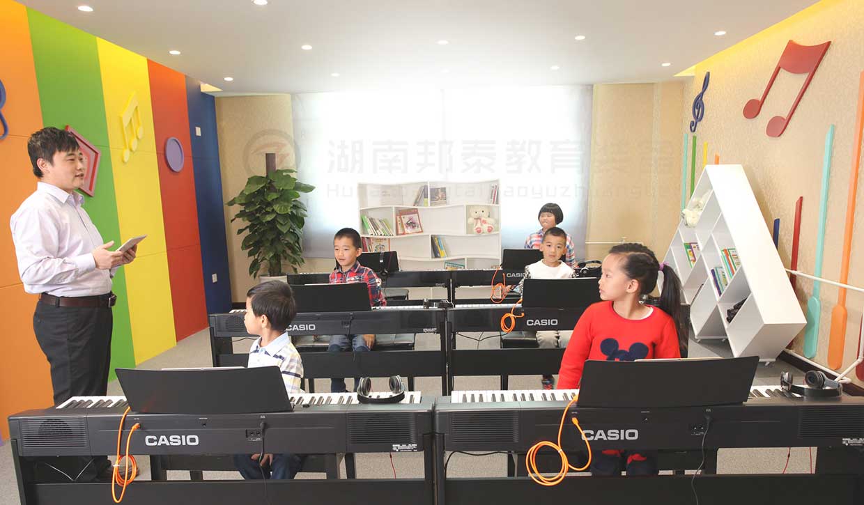 湖南邦泰教育裝備有限公司的音樂教室首先要配備有一套音樂欣賞與表達設備,音響、調(diào)音臺、功放、話筒、五線譜電教板、等多媒體相關設備必不可少,與此同時,硬件的配置少不了軟件資源的支撐,所以要配備音樂歌曲資源和多媒體教學軟件(軟件視小、初、高不同階段,配置不同軟件)。
